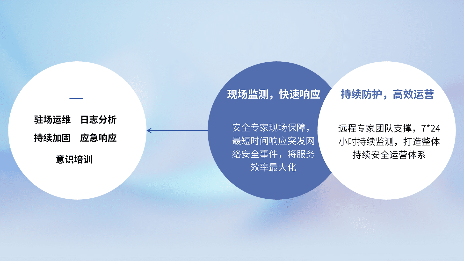 针对客户行业特性,,,提供专属的一站式安全管理服务,,,帮助客户全面感知网络空间威胁,,,,通过安全专家的线上、、、线下防护支持,,,,实现风险闭环,,,将安全保障常态化,,,为客户打造常态化安全运维运营服务。。